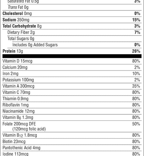 Pea Protein Concentrate, Sunflower Oil, Natural Flavors, Amaranthe, Brown Rice, Guar Gum, Soluble Vegetable Fiber, Flaxseed, Spirulina, Fructooligosaccharides, Quinoa, Medium Chain Triglycerides, Potassium Citrate, Flax Seed, Chia Seed, Chlorella, Millet, Matcha, Alfalfa, Pea Fiber, Salt, Gum Acacia, Xanthan Gum, Plant Fiber, Carrot, Ascorbic Acid, Steviol Glycosides, Noni Fruit, Mangosteen Fruit, Broccoli, Lemongrass, Papaya, Rice Protein, Protease, Artichoke, Spinach, Cranberry, Grape Seed Extract, Borage Seed Oil, Asparagus, Kale, Black Bean, Beet, Selenium Amino Acid Chelate, Blueberry, Luo Han Guo Extract, Niacinamide, Zinc Oxide, Manganese Citrate, Ergocalciferol, Calcium D Pantothenate, Copper Gluconate, Vitamin A Palmitate, Bromelain, Horsetail, Acerola, Biotin, Potassium Iodide, Pyridoxine Hydrochloride, Parsley, Sodium Copper Chlorophyllin, Lemon Bioflavonoid Extract, Folic Acid, Molybdenum, Riboflavin, Thiamine Mononitrate, Chromium Picolinate, Methylcobalamin.